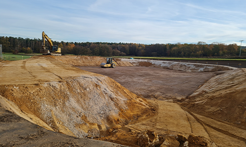 - Komplexe Erdarbeiten zur Vorbereitung der Asphaltflächen und zur Einhaltung der wasserrechtlichen Vorgaben